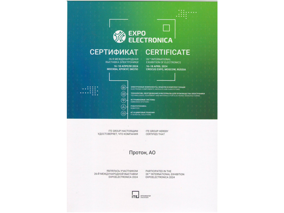 16-18 апреля 2024 г. АО «Протон» приняло участие в Международной выставке электроники — ExpoElectronica-2024.