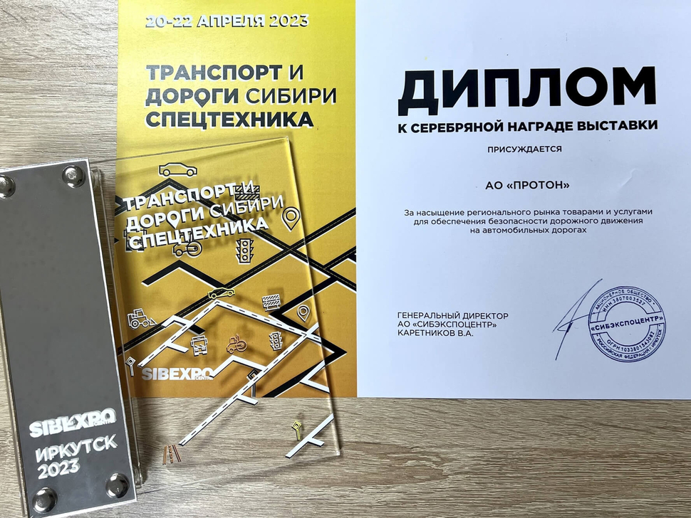 Наше предприятие представило продукцию для обеспечения безопасности дорожного движения и освещения, которая вызвала интерес у посетителей выставки. Экспозиция АО «Протон» была высоко оценена организаторами выставки — мы получили серебряную награду!